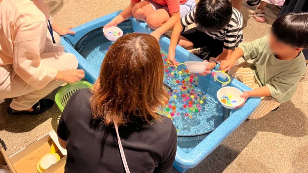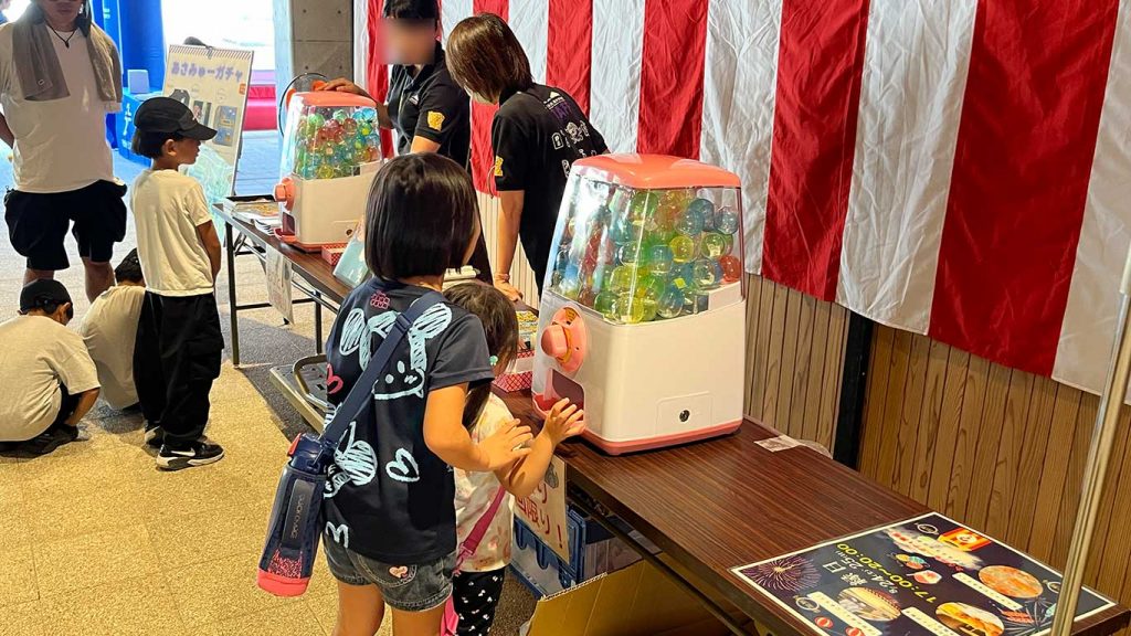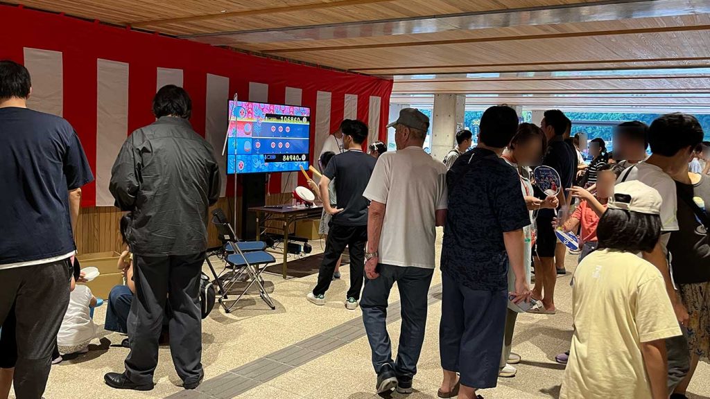 夏休みお子様づれの来館者向けに福井県立一乗谷朝倉氏遺跡博物館エントランスにてあさみゅー夏祭りを開催しました。ゲームや飲食販売の出店もあり、たくさんのお客様で賑わいました。縁日ゲームの企画・手配、運営、装飾・設営に携わりました。